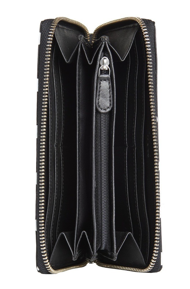Ein sehr lustiges Portemonnaie, das aufgrund seiner Größe dennoch funktionell und nützlich ist. Sie verfügt über 4 Innenfächer, von denen eines mit einem Reißverschluss versehen ist, und an der Seite über 4 Kreditkartenfächer und ein Fach für Geldscheine. Sie wird an der Seite mit einem langen Metallreißverschluss geschlossen.