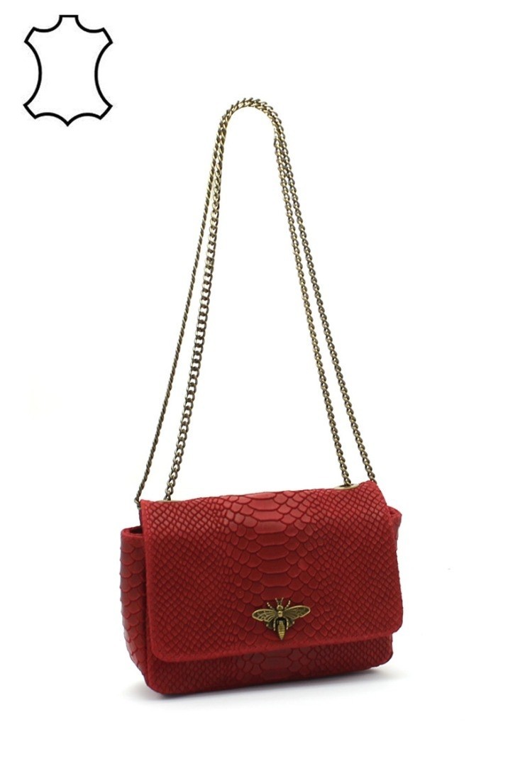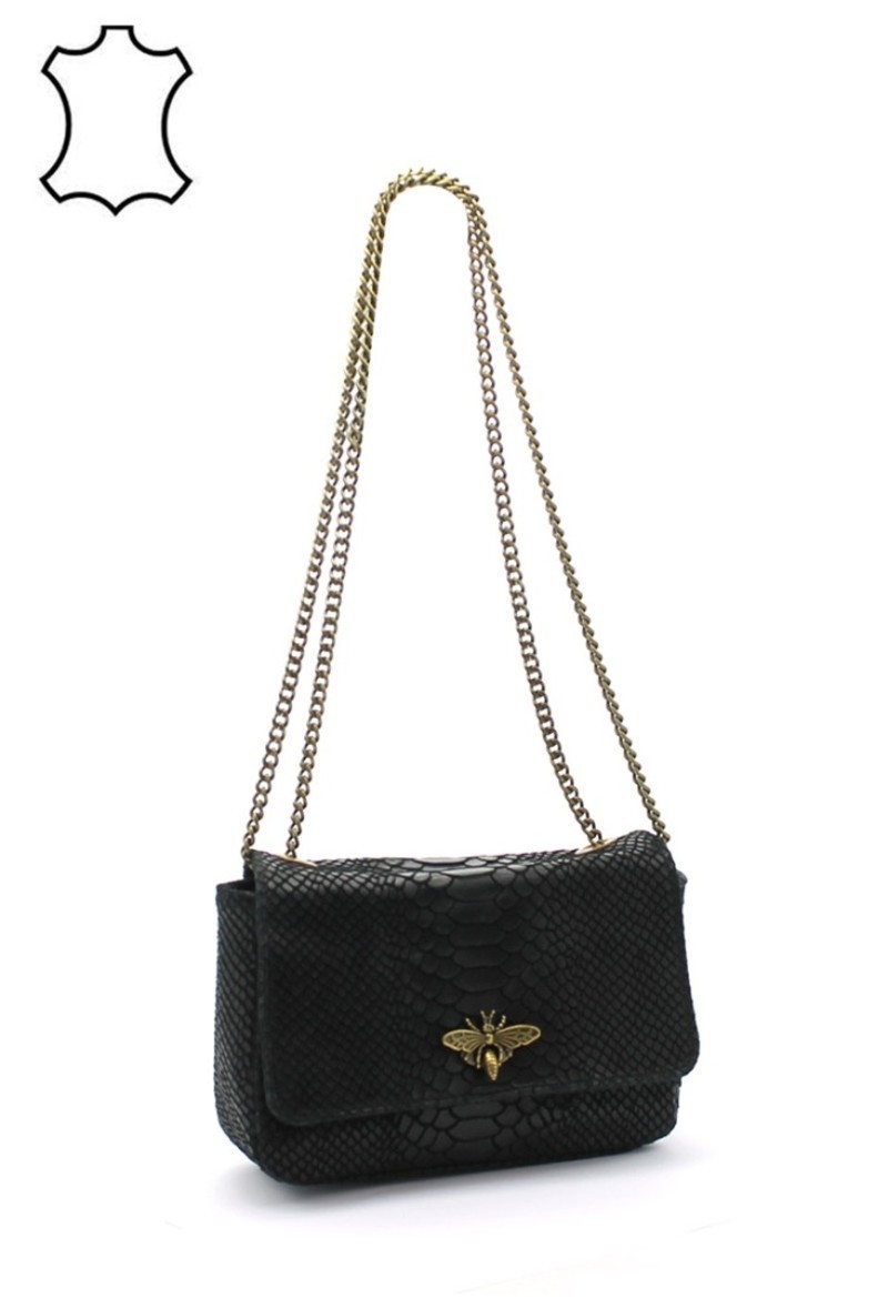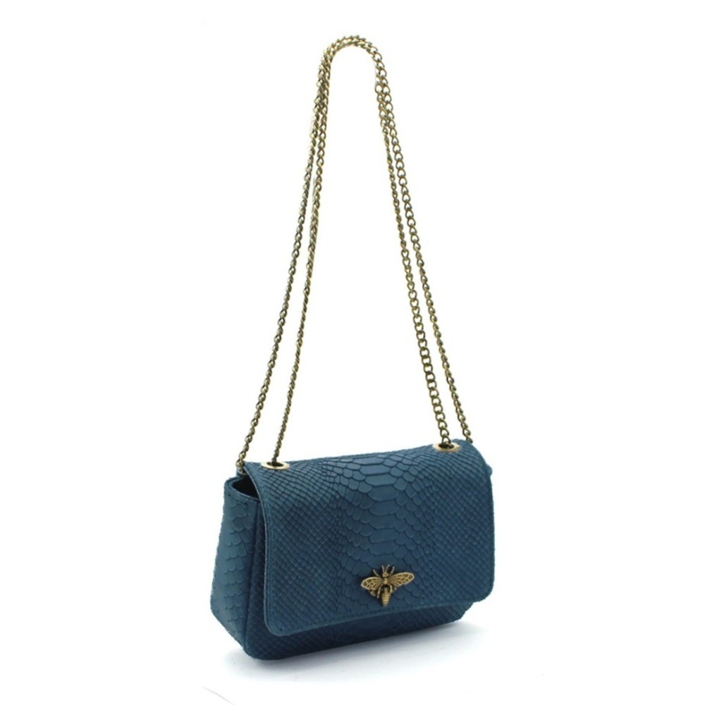 Eine schicke und zugleich praktische Tasche mit einem Bienenverschluss und einer Kette, um sie über der Schulter zu tragen.