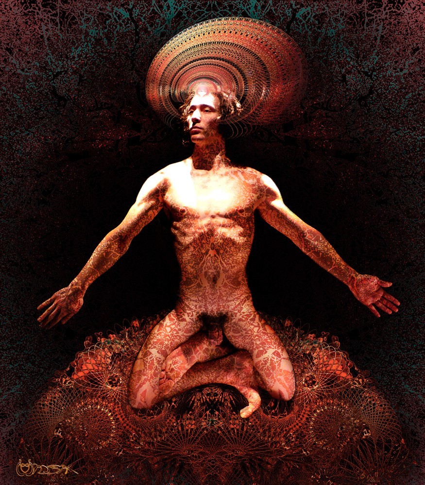 In Anlehnung an das XV. Arkanum des Tarot de Marseille enthält der Teufel (derjenige, der trennt) in sich allein und nach seinem Motto das ganze „Große Werk“ der traditionellen Alchemie. Symbolisch mit Yin Yang verbunden, ist es der Lebens-Tod-Zyklus, der in dieser Auflösung und Gerinnung symbolisiert wird. Der (al)chemische Niederschlag des Lebens in der feinstofflichen Lösung der Leere, bis er zum gelösten Stoff zurückkehrt. Eine Hand wird angeboten, eine Hand nimmt sie zurück, die Wahrheit und das Geheimnis. Die prekäre Gleichgewichtsposition, in der die Bewegung des Körpers seine volle Kontrolle und Kraft übernimmt, um ein Höchstmaß an potenzieller Energie freizusetzen. Auf den Knien, durch seinen Zustand, aber die vergänglichen Universen beherrschend.