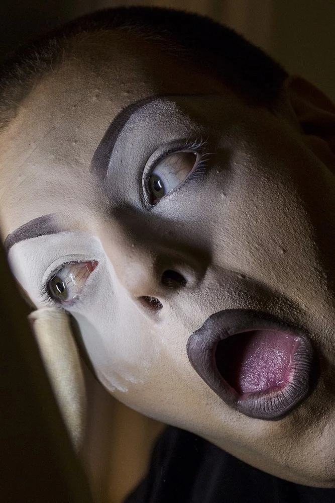 Der Titel und die Rahmung dieses Bildes verweisen uns automatisch auf die Maske, wir entdecken die Grundlagen des Make-ups einer Drag Queen, die weit entfernt von dem sehr weiblichen Bild zu sein scheint, das wir von ihr haben, es bringt uns mehr zurück zu einem Theaterbühnen-Make-up und stellt dann den Begriff der Schauspielerei auf. Rollenspiel, Bühnenspiel, was ist das Ziel dieser Transformation? Eine Frage, die unbeantwortet bleibt, denn eingefroren in einem engen Rahmen, der nichts zeigt, lässt das Bild der Fantasie aller freien Lauf und hebt die Verwandlung und Metamorphose hervor.