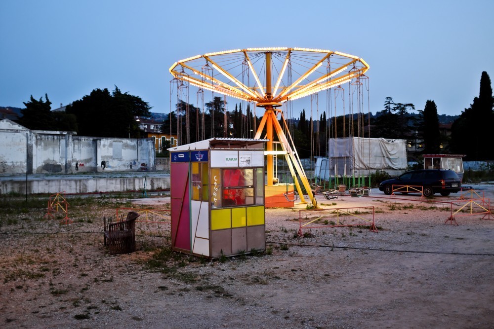 The merry-go-round with swings lights up, adorned with its most beautiful colors. He stands there, on this wasteland, ready to make us dream. I need to trigger, so as not to forget this gift that is given to me.