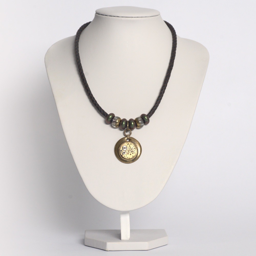 Ce Collier de créateur a été réalisé avec un ancien mouvement de montre suisse.