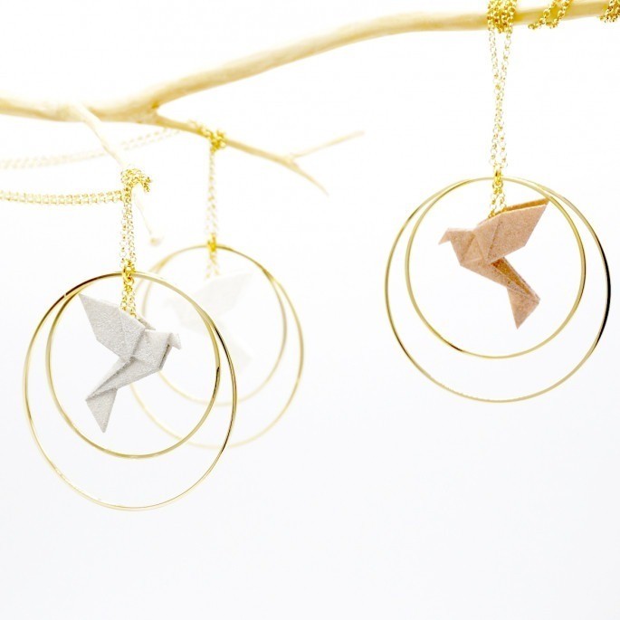 L’oiseau origami, est une nouvelle vision du pliage du papier japonais, il en garde la finesse et la délicatesse. Bien plus solide que du papier, de part son impression 3D faite dans de la poudre de nylon fusionnée par laser, un polymère 100 % bio sourcé, matériaux déjà utilisé depuis plus de 70 ans en infection et extrusion de pièces.