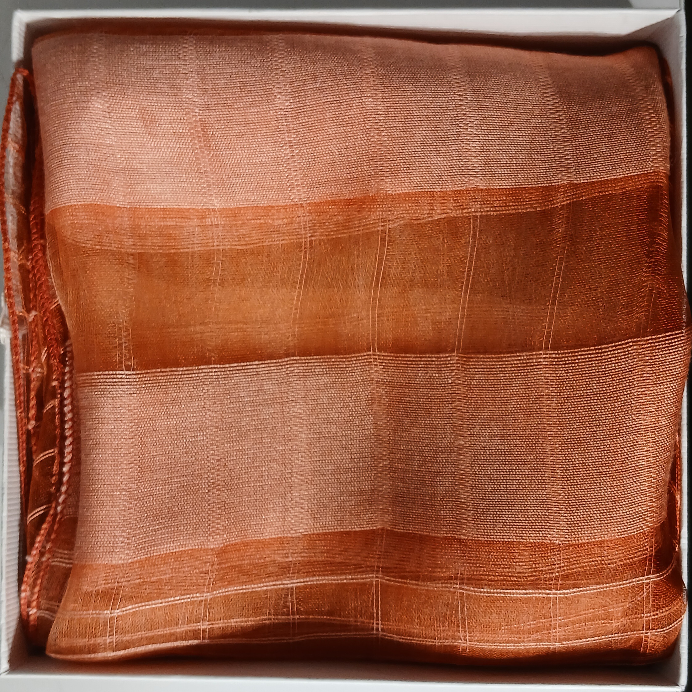 Délicat et lumineux, ce foulard rectangulaire en organza de soie ligné incarne une élégance contemporaine tout en légèreté. Sa teinte orange corail vibrante apporte chaleur et caractère, tandis que la transparence subtile de l’organza crée un jeu de lumière raffiné et aérien.