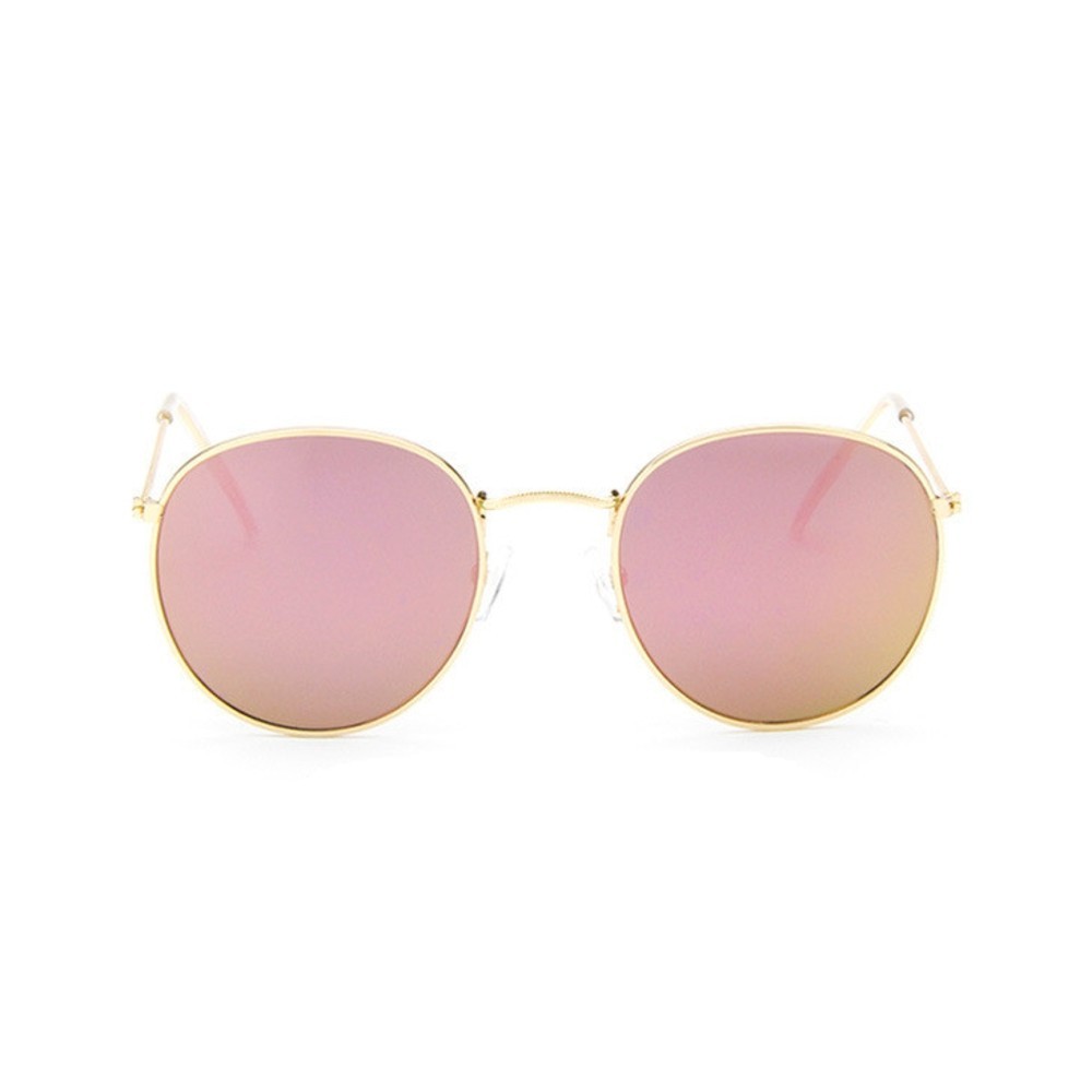 Particularités : Cadre de monture argentée ou or, verres teintés rose irisé ou noir en polycarbonate, UV 400, anti-reflets