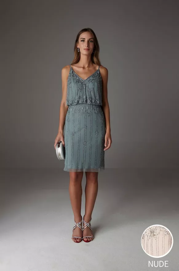 Matière: tulle fin et jersey en polyester, perles et sequins