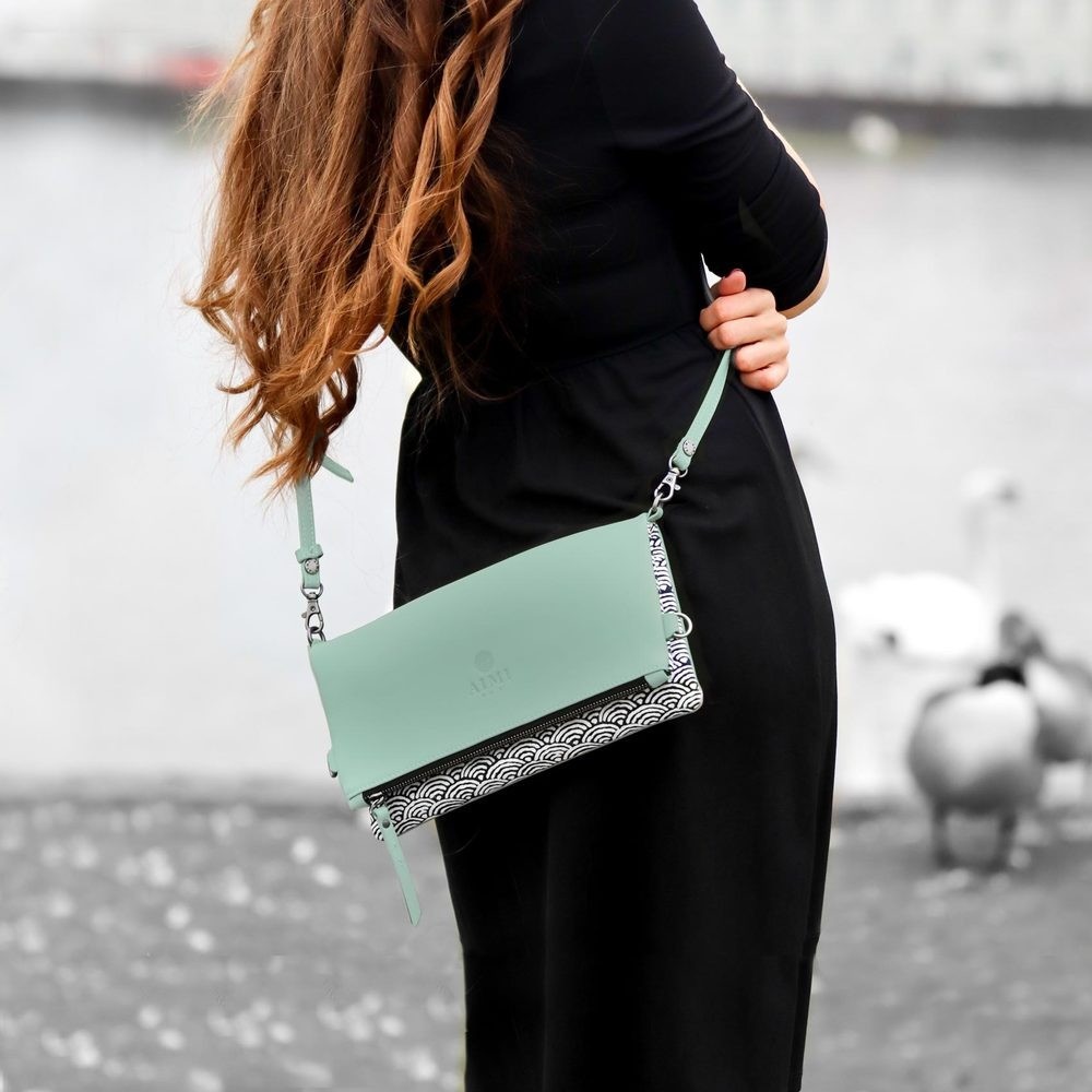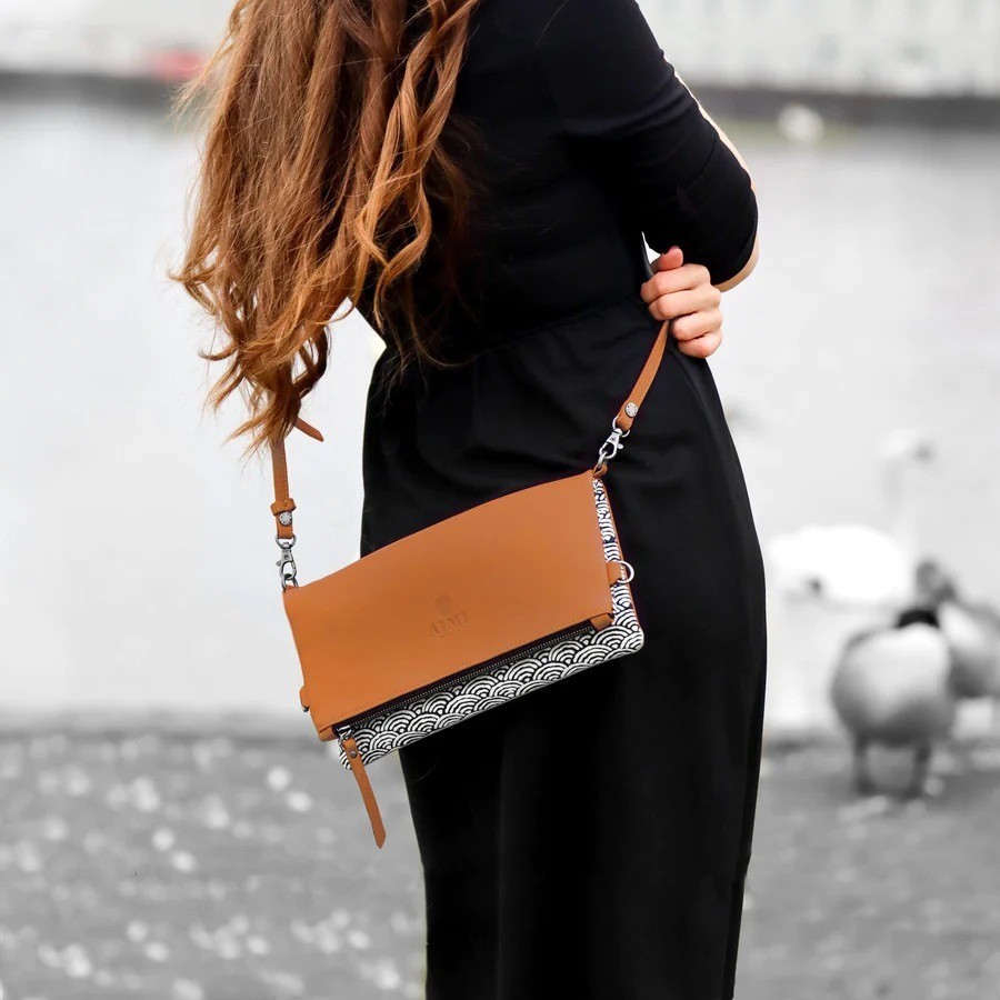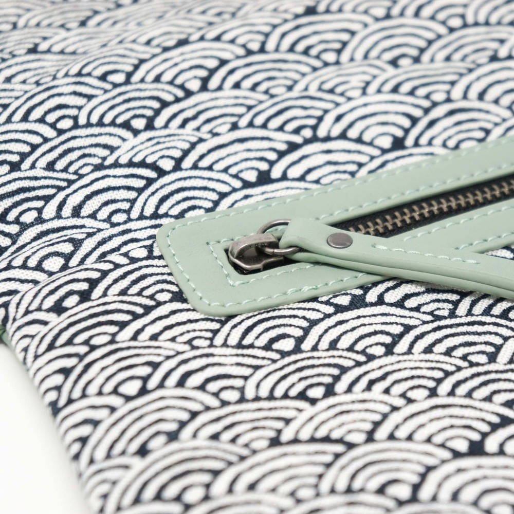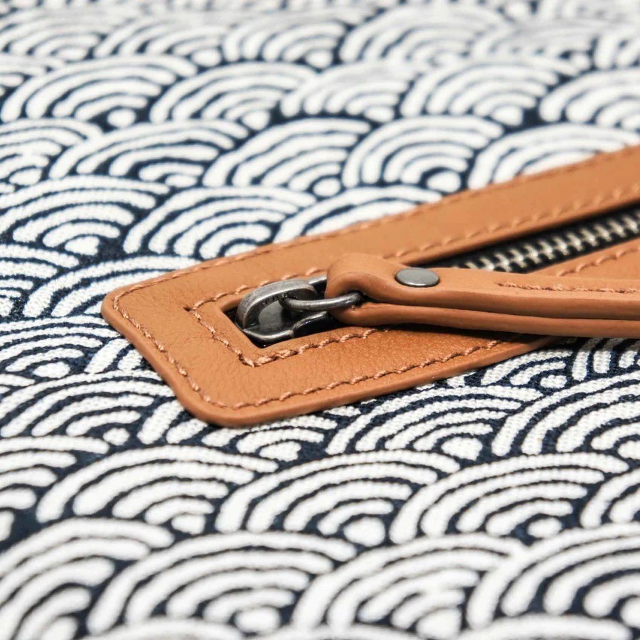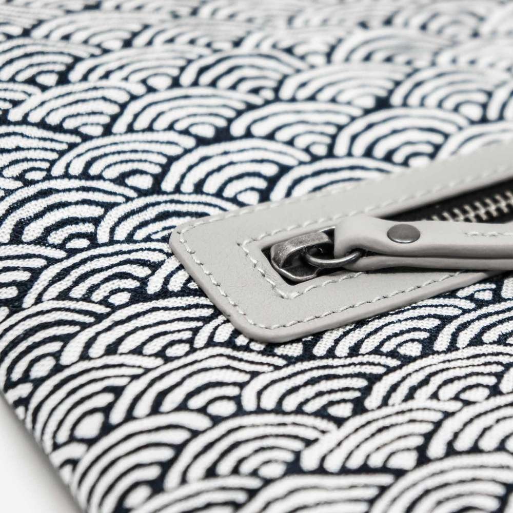 Le sac pochette « MIU » se déplie et se rabat, maintenu discrètement par un système aimanté. Ce sac pochette des ouvertures zippées et agrémentées d’une fine bandoulière et d’une dragonne de cuir. Il est très agréable et confortable. Il est réalisé dans un beau cuir fin et doux, jouant avec la beauté de l’impression en motif japonais.